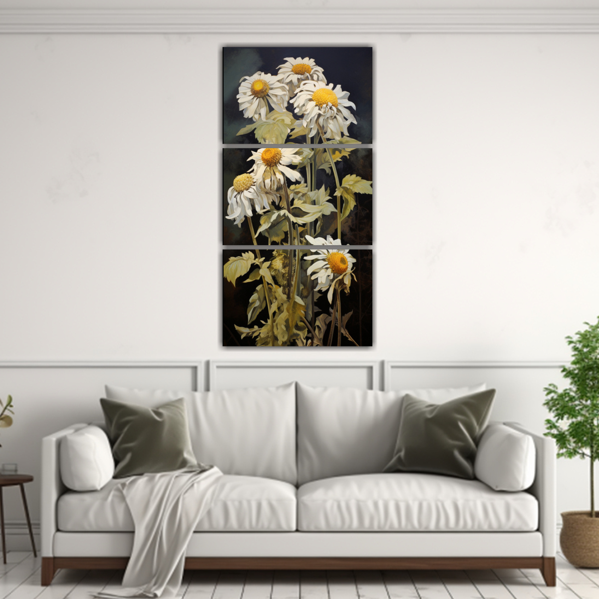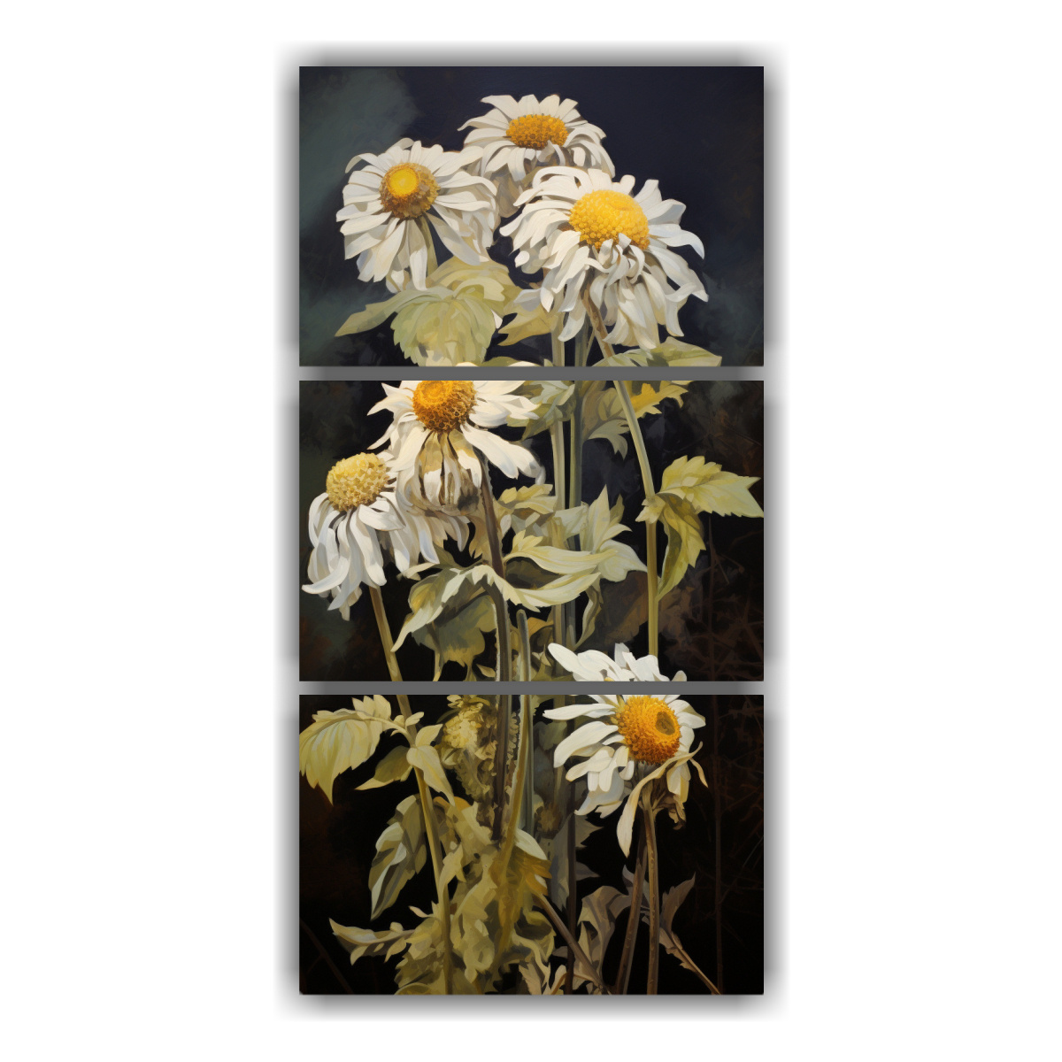 Cuadro Abstracto Flores Alcachofa Jerusalén Luminoso Tres Lienzos Composición.