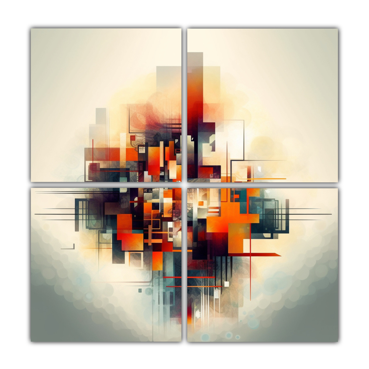 Cuadro Abstracto Geométrico Cuatro Canvas Cuadrado