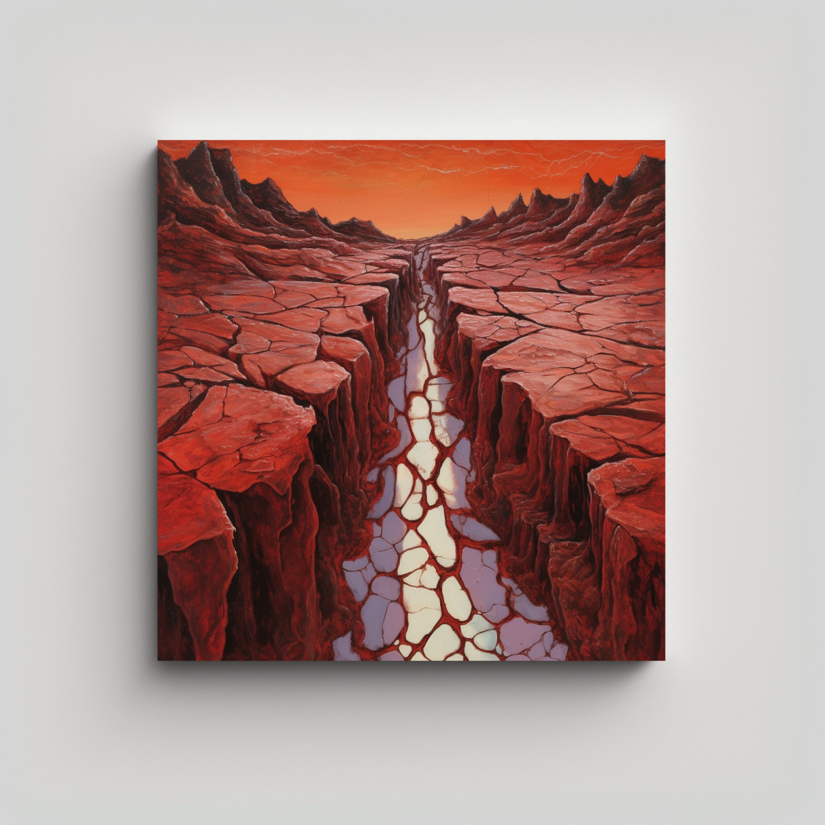 Cuadro Abstracto: Grieta Profunda En Suelo Rojo
