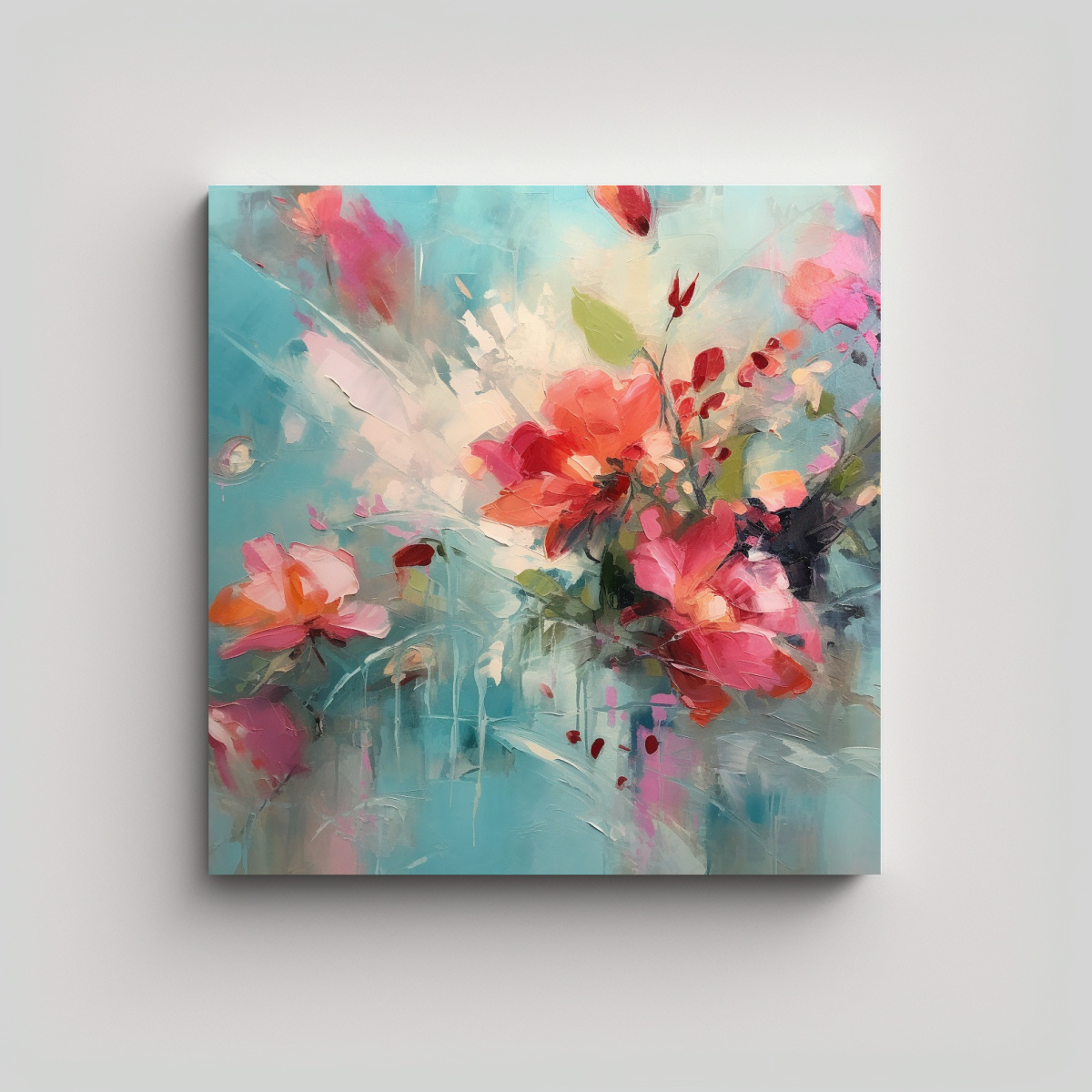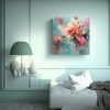 Este cuadro abstracto en tonos de turquesa, rojo y rosa es ideal para decorar cualquier espacio de tu hogar u oficina Recomendamos colocarlo en un salón moderno o una habitación minimalista, donde sus colores vibrantes aportarán vida y energía al ambiente Combínalo con muebles en tonos neutros para lograr un equilibrio visual perfecto