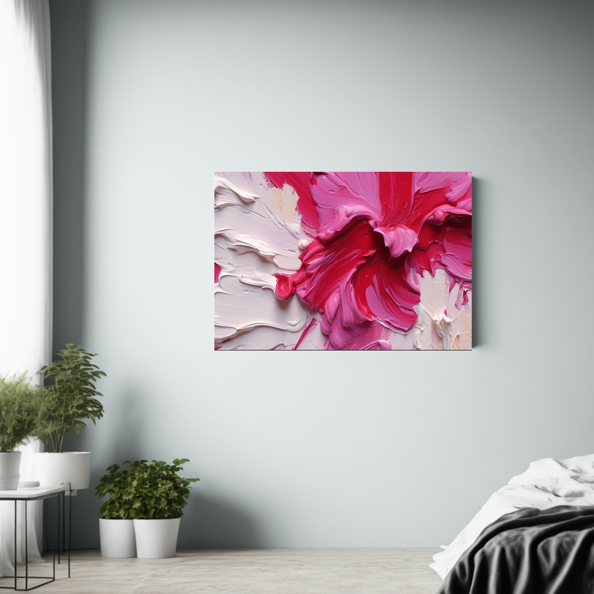 Este Cuadro Abstracto Hibiscus Rojo en Fondo Claro es ideal para colocar en la sala de estar sobre un sofá blanco, creando un contraste elegante y moderno También puede ser el punto focal en una pared de tonos neutros para darle vida a la habitación ¡Atrévete a experimentar con la decoración!