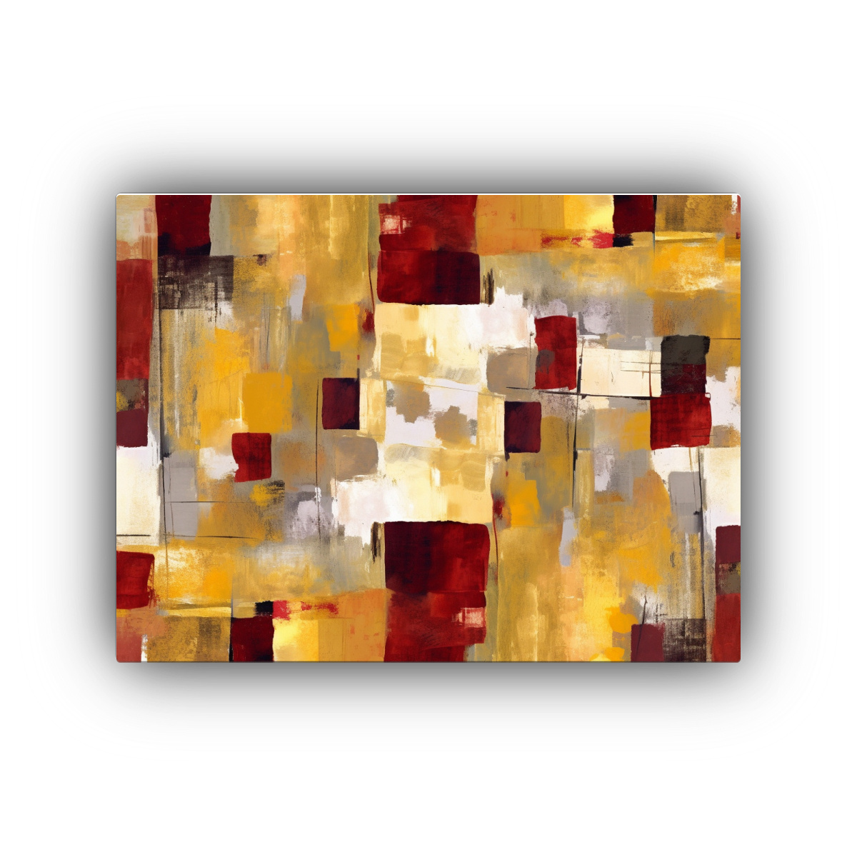 Este cuadro abstracto en tonos marrón, beige y rojo sería ideal para colocar en una pared blanca junto a muebles en colores neutros para crear un contraste elegante y contemporáneo en tu sala de estar ¡Atrévete a destacar tu estilo!