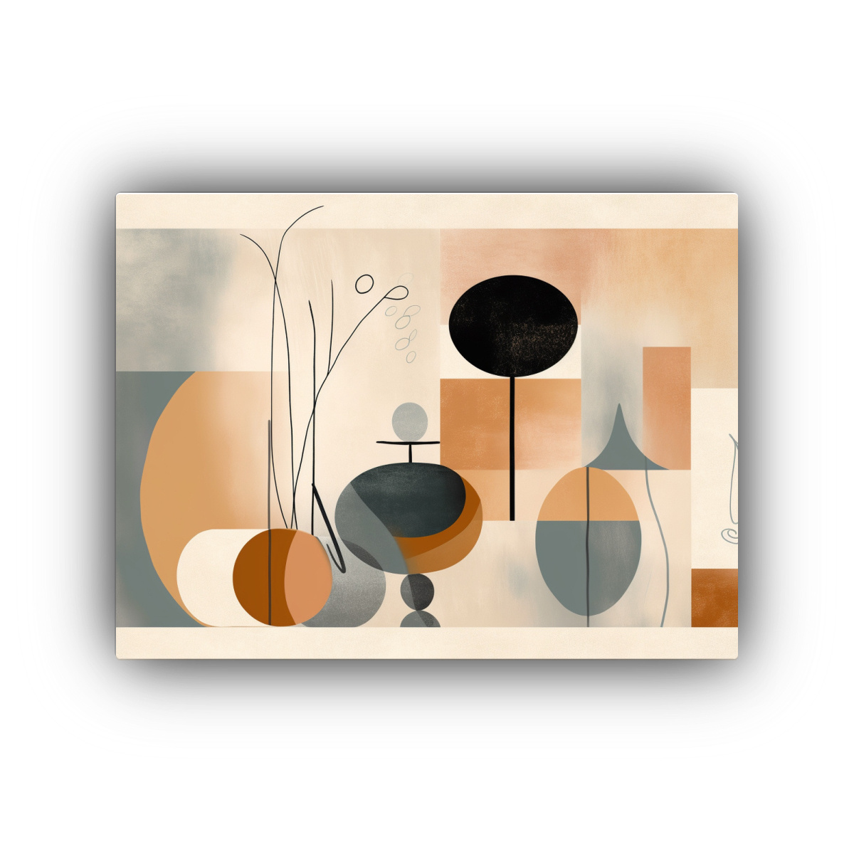 Renueva tu espacio con este cuadro abstracto de líneas y objetos en colores suaves Ideal para salas, dormitorios o espacios de trabajo Combínalo con muebles de tonos neutros para crear un ambiente moderno y elegante