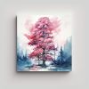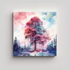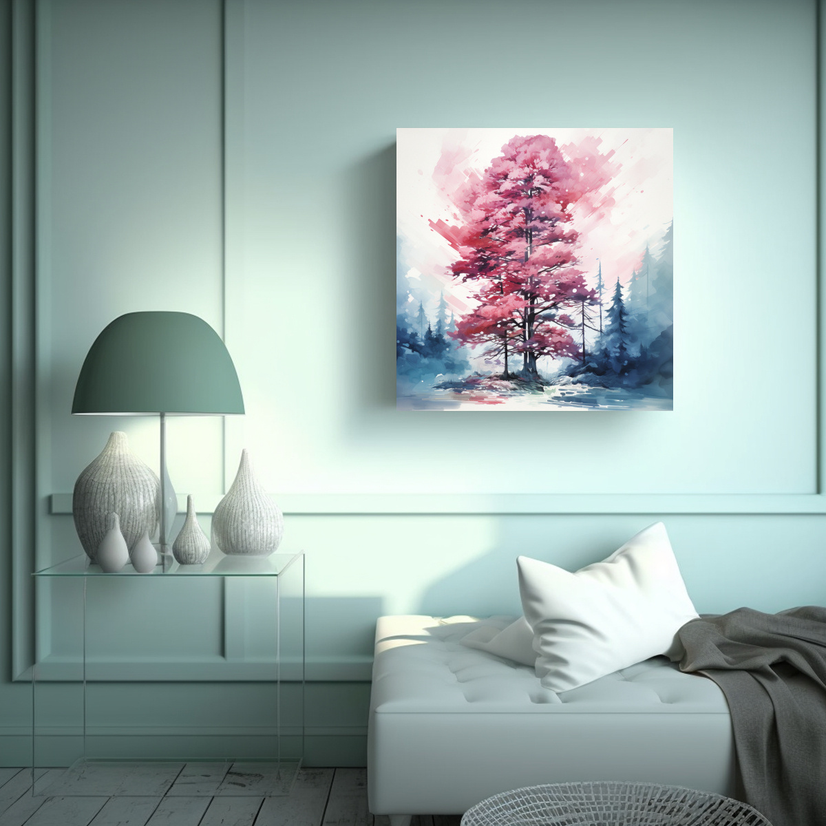 Cuadro Abstracto Inspirador De Un Árbol Rojo Y Azul Con Las Palabras Bonito Y Wat En Colores Rosados Y Azules.