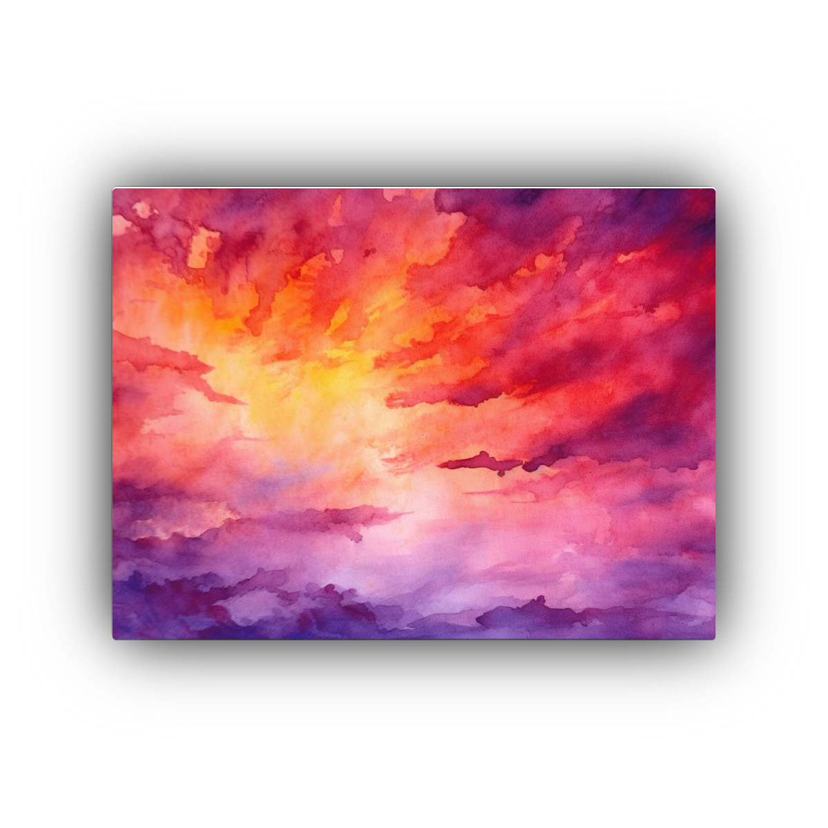 Cuadro Abstracto Intenso Acuarela Atardecer Naranja Púrpura