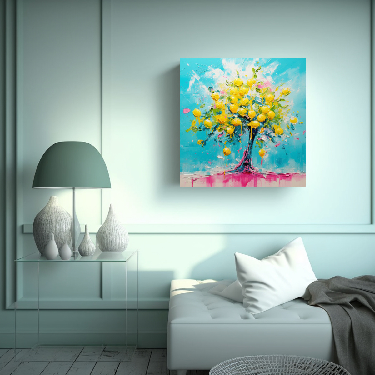 Cuadro Abstracto Intenso Árbol De Limón Turquesa Y Rosa Pintura Abstracta