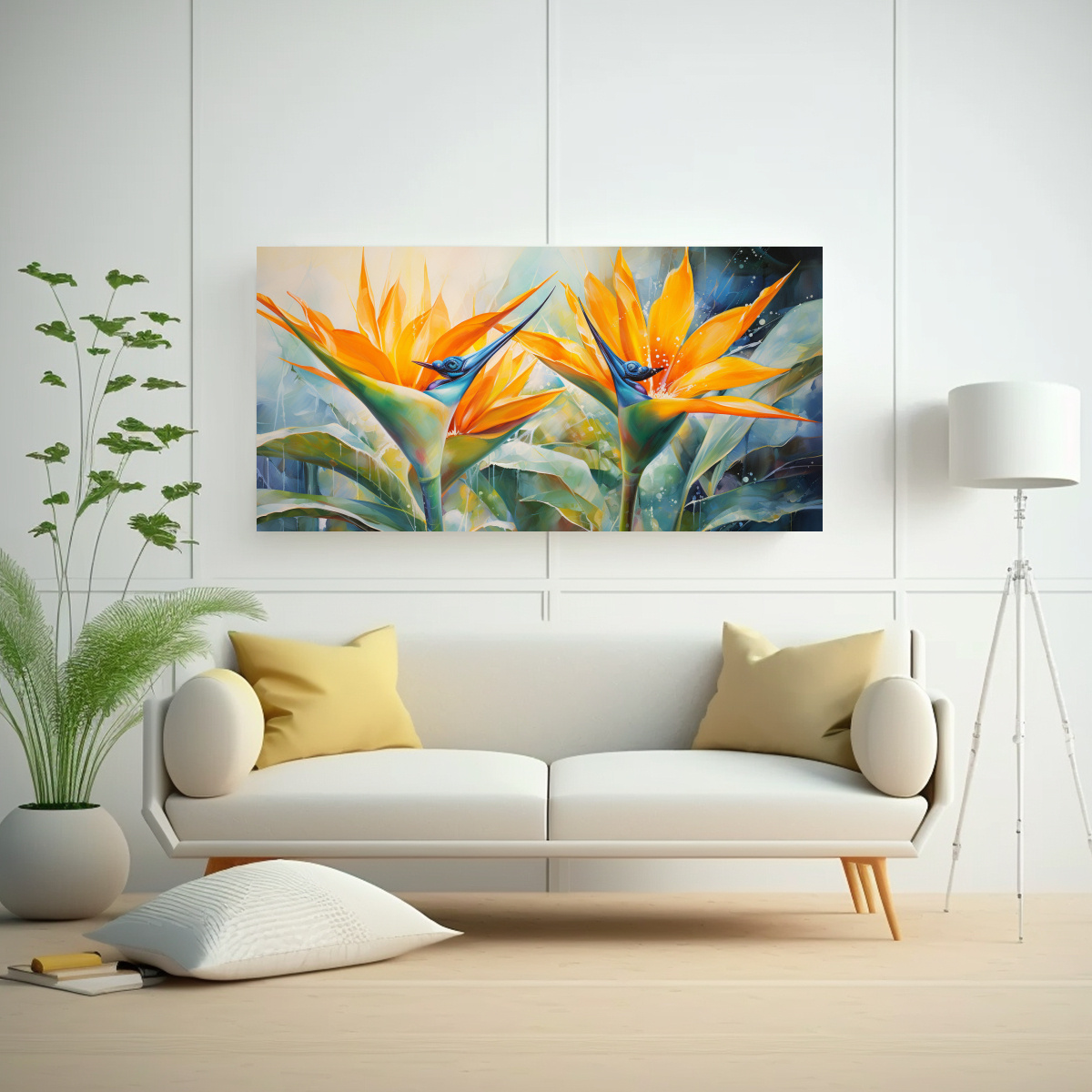 Este cuadro abstracto con flores Blancas y Naranjas lucirá espectacular en una pared de tonos neutros como blanco o beige, creando un contraste llamativo y sofisticado Colócalo en el centro para que sea el punto focal de la habitación o úsalo como parte de una galería de arte en una pared amplia Combínalo con muebles en tonos cálidos para resaltar su intensidad y añadir calidez al espacio