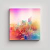 Cuadro Abstracto Juvenil En Tela Sublimada Con Cuadrados Rojos Durazno