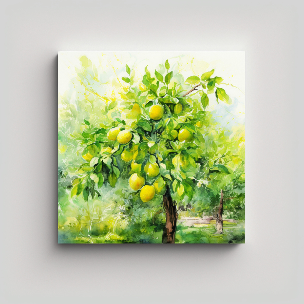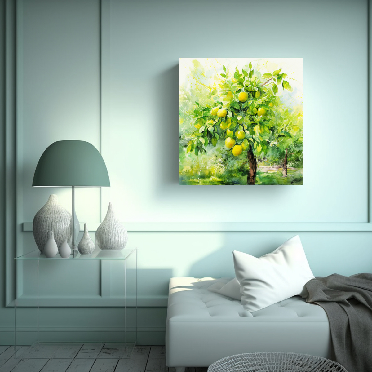 Cuadro Abstracto Lienzo De Tela Inspiración Esquema Árbol De Limón Amarillo Y Verde