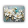 Cuadro Abstracto Lienzo Tela Flores Blancas Nácar 4k Gris Deco