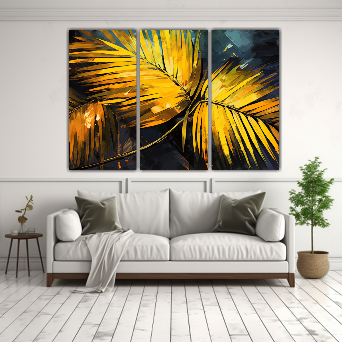 Cuadro Abstracto Luminoso Con Hojas De Palma En Tonos Amarillos