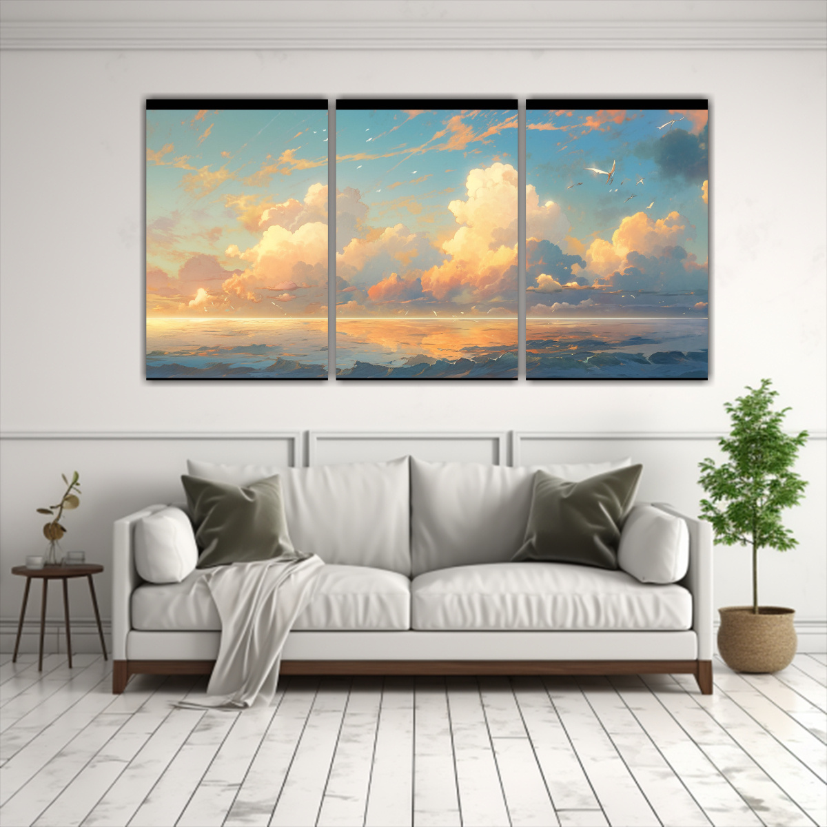 Renueva tu espacio con este cuadro que combina la serenidad del cielo y la profundidad del mar en tonos amarillos y azules Dale vida a tus paredes con la mejor calidad y diseño único de DecoCuadros ¡No te pierdas la oportunidad de tener esta obra en tu hogar!