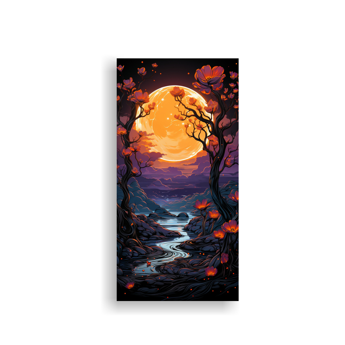 Cuadro Abstracto Mágico Árbol De Mangle En Colores Morado Y Naranja Ambiente Neonoir.