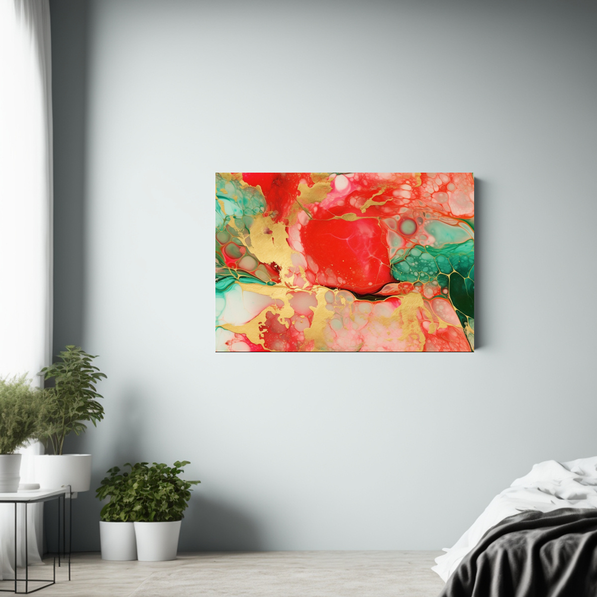 Cuadro Abstracto Mármol Técnica Alcohol Rojo Brillante