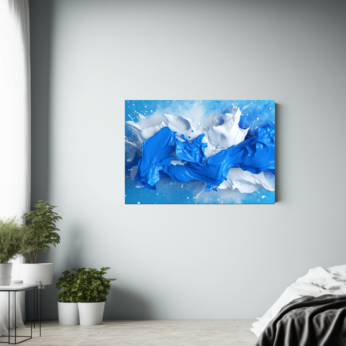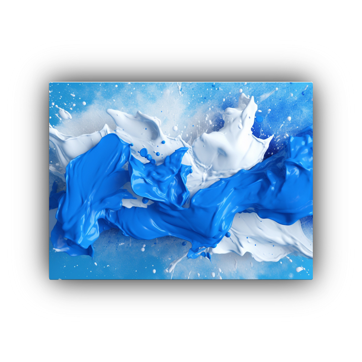 Cuadro Abstracto Minimalista Con Intenso Patrón De Salpicaduras Blancas En Fondo Azul
