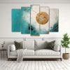 Cuadro Abstracto Minimalista En Alta Resolución Con Turquesa Y Oro