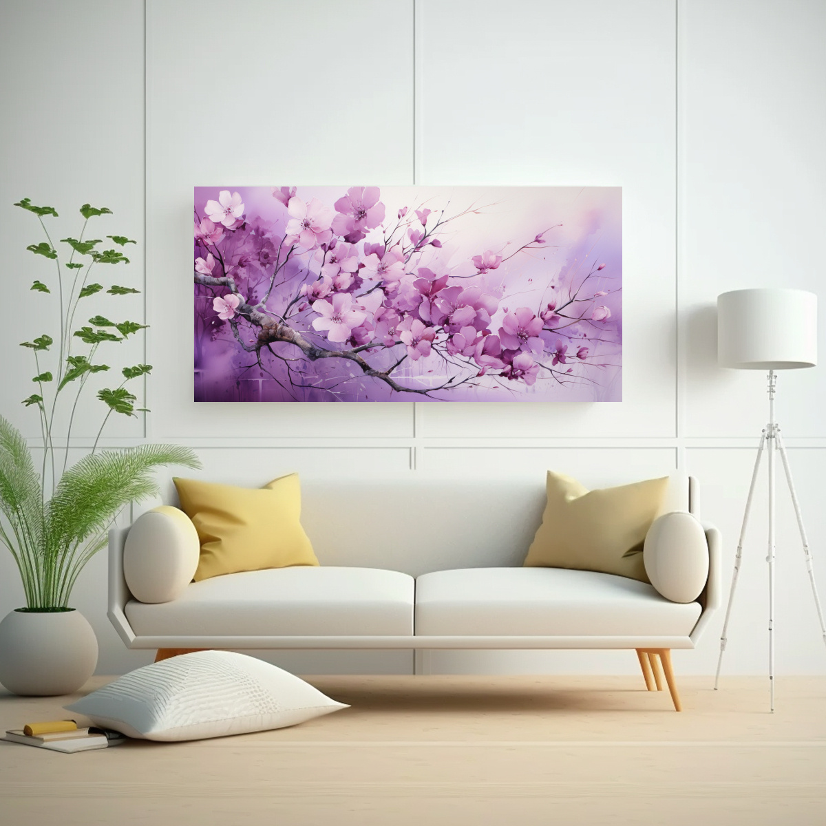 Este cuadro sería ideal para decorar tu sala de estar o tu dormitorio Colócalo sobre un mueble blanco para resaltar los tonos morado y blanco, creando un ambiente sofisticado y relajante ¡Atrévete a darle un toque de arte moderno a tu hogar con este diseño exclusivo!
