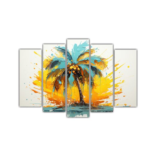Cuadro Abstracto Moderno Árbol De Palma Colores Amarillo Y Turquesa