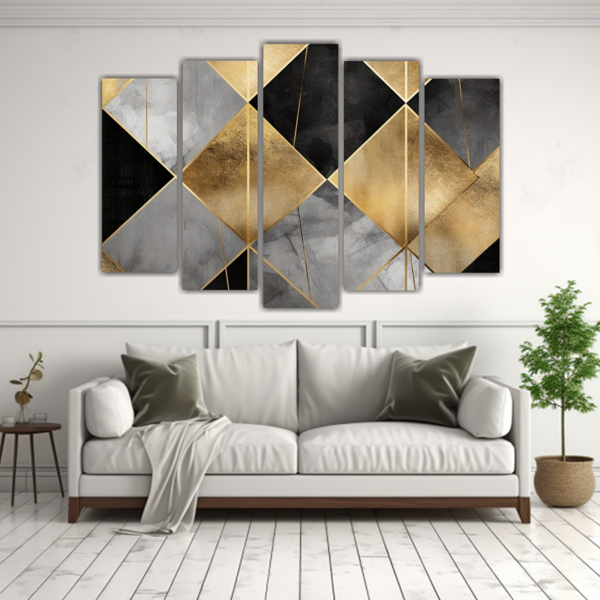 Cuadro Abstracto Moderno Con Contraste De Líneas Doradas Y Negras