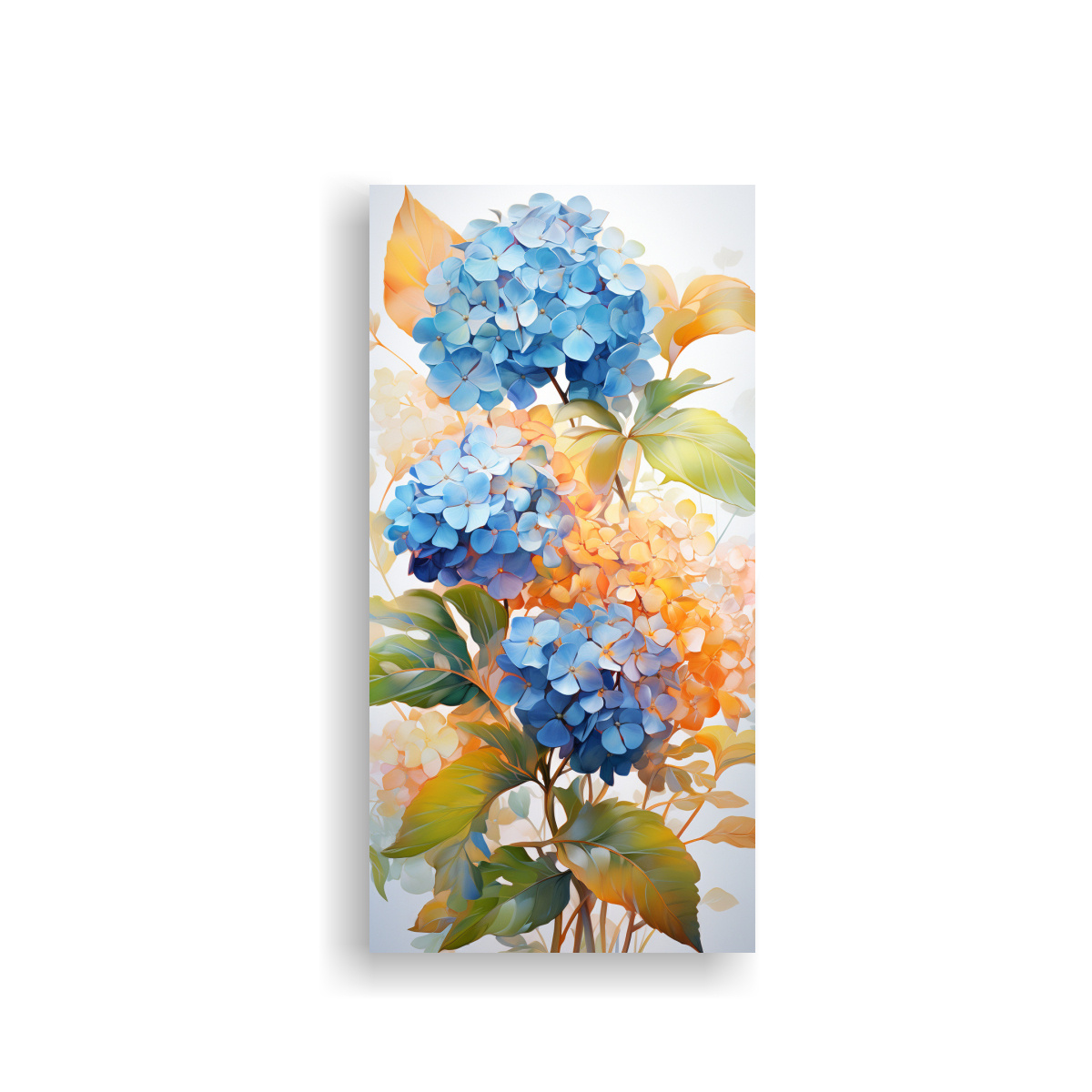 Cuadro Abstracto Moderno De Hortensias Naranjas Y Azules, Pintura Decorativa Urbana