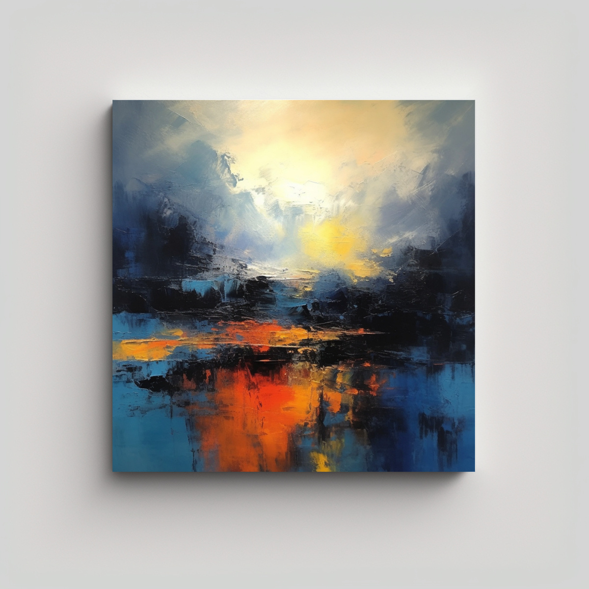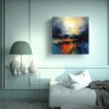 Este cuadro abstracto moderno de textura con azules y naranjas se verá espectacular en tu sala de estar Puedes colocarlo sobre un sofá de color neutro y combinarlo con cojines en los tonos presentes en la obra También puedes colocarlo en el dormitorio principal, sobre la cabecera de la cama, para crear un ambiente relajante y acogedor ¡Atrévete a darle un toque de arte a tus espacios con este cuadro exclusivo de DecoCuadros!