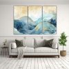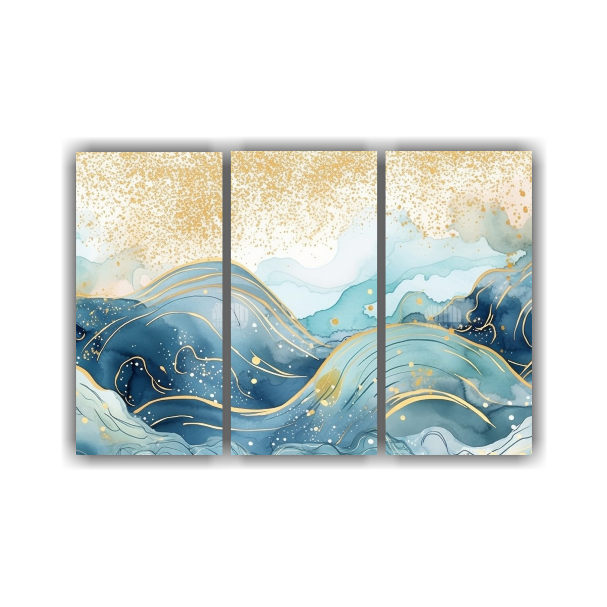 Cuadro Abstracto Moderno Temática Ondas Acuarela En Bastidor Con Dorado