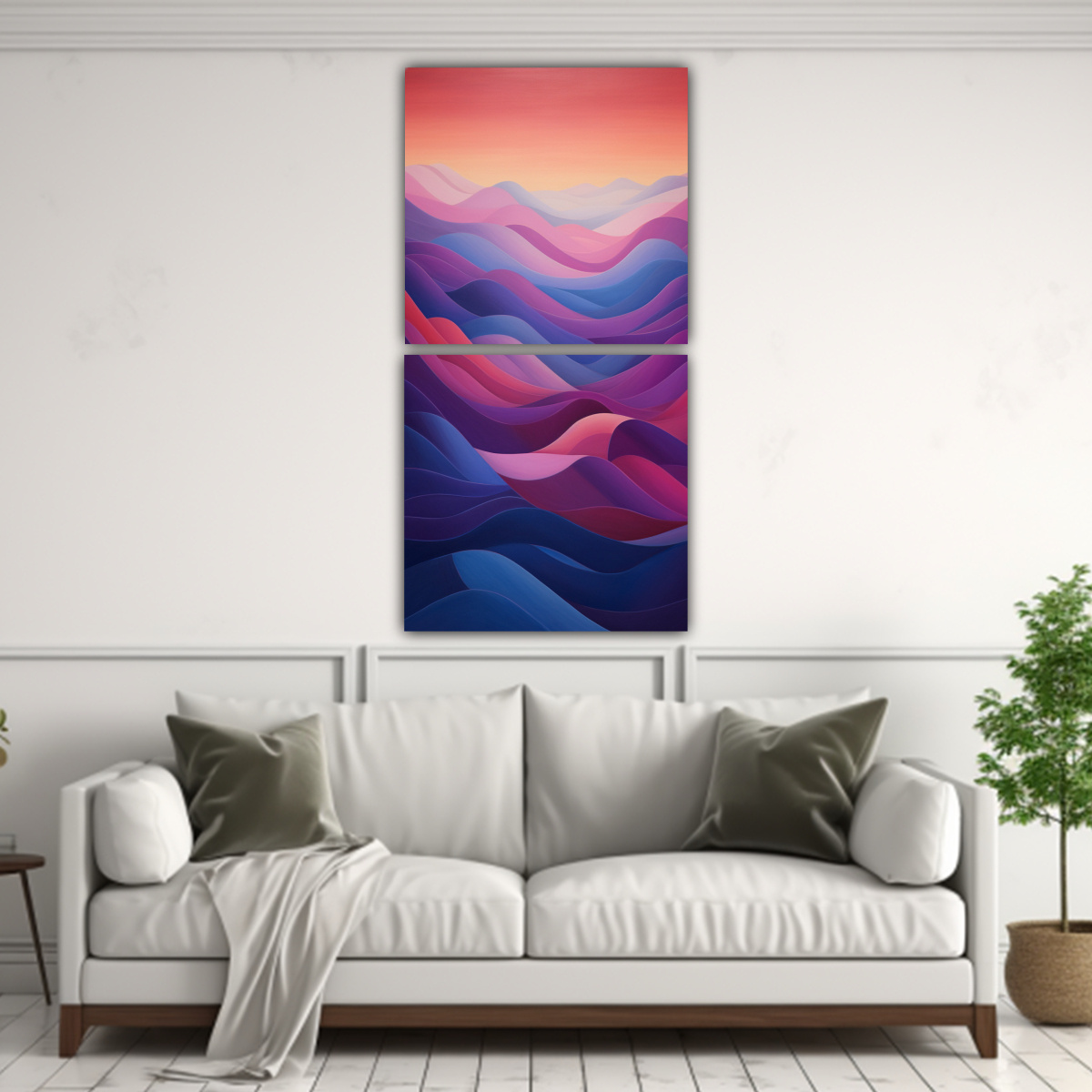 Este cuadro abstracto montañas al crepúsculo es perfecto para decorar tu sala de estar o dormitorio Colócalo sobre un mueble de color blanco para resaltar los tonos intensos de la obra Combínalo con cojines en tonos morado, gris y lila para crear un ambiente armonioso y elegante