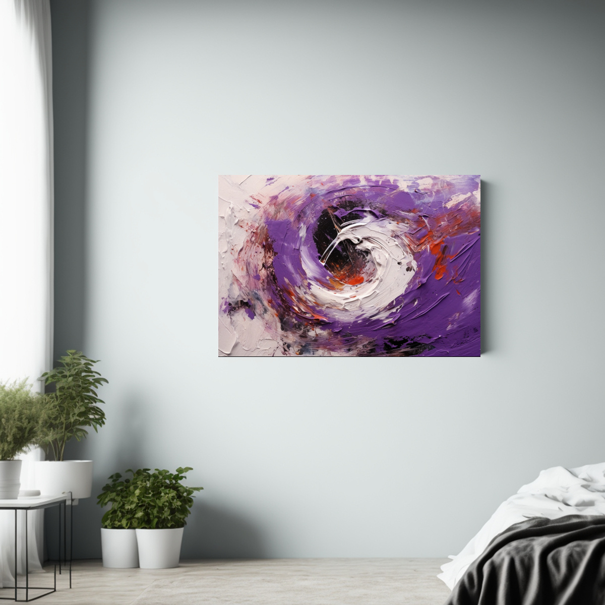 Cuadro Abstracto Morado Con Líneas Finas Y Centro Blanco