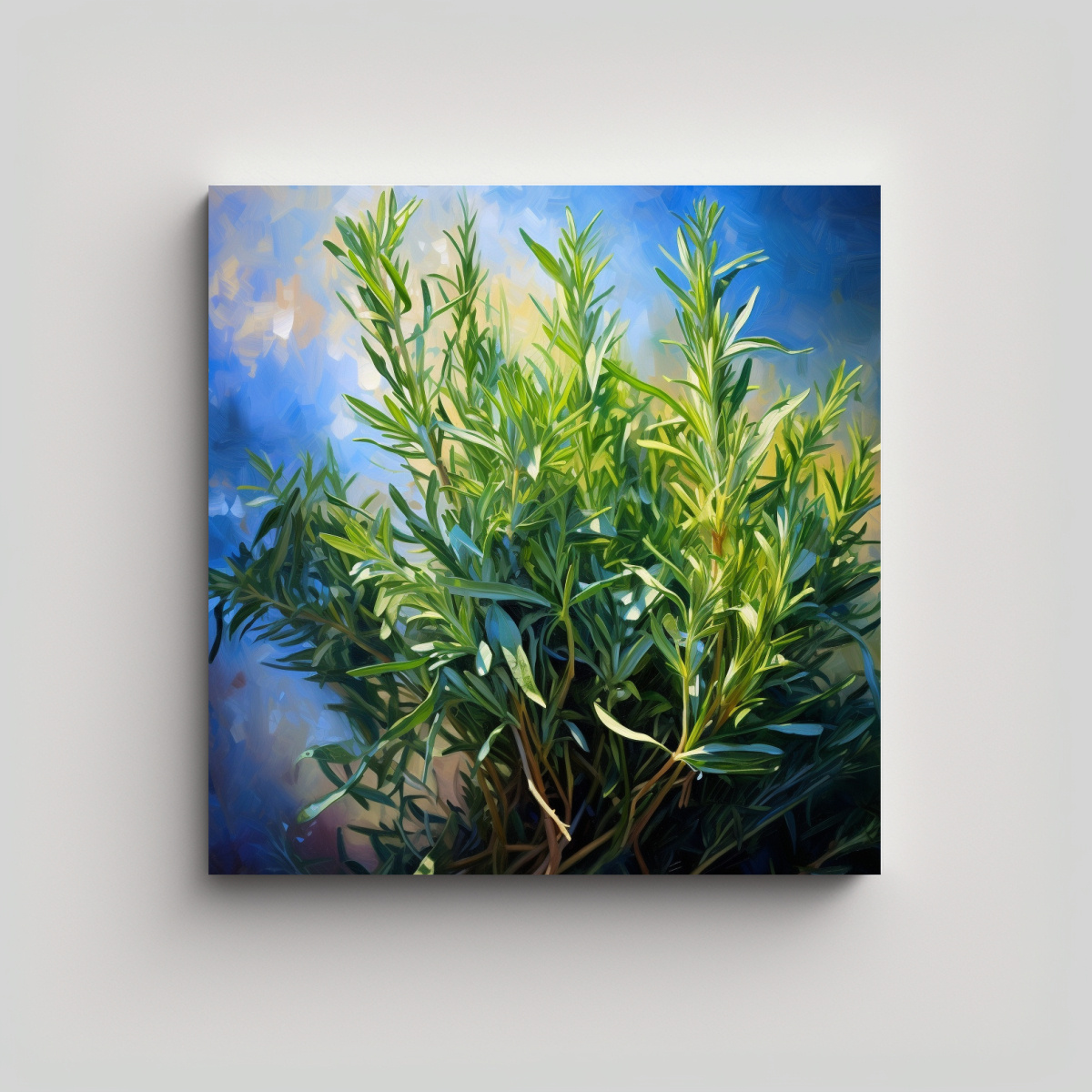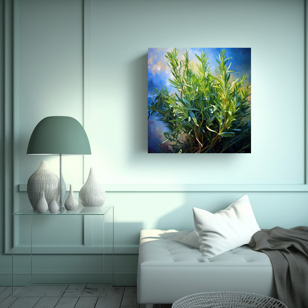 Decora tu hogar con el cuadro abstracto motivo a romero hierbas abstract painting high detailed oil style Sus colores plateado, turquesa, azul marino grisáceo, gris, verde azulado, dorado y mostaza le darán un toque único a tu espacio Nuestros cuadros son impresos en tela de alta calidad con bastidores de madera, lo que garantiza durabilidad y resistencia Además, ofrecemos los precios más económicos del mercado y entregas rápidas y gratuitas en Santiago ¡No te pierdas nuestros diseños exclusivos!