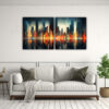El cuadro abstracto multicolor de ciudad en lienzo es perfecto para añadir un toque moderno y vibrante a tu hogar u oficina Con tonos coral, azul marino grisáceo, dorado, gris, carmesí, beige y menta, este cuadro agregará vida a cualquier espacio La calidad de impresión en tela de alta calidad con bastidores de madera garantiza una imagen nítida y duradera Además, su diseño exclusivo lo hace único y especial Aprovecha nuestra entrega rápida y envíos express a regiones para recibirlo en poco tiempo