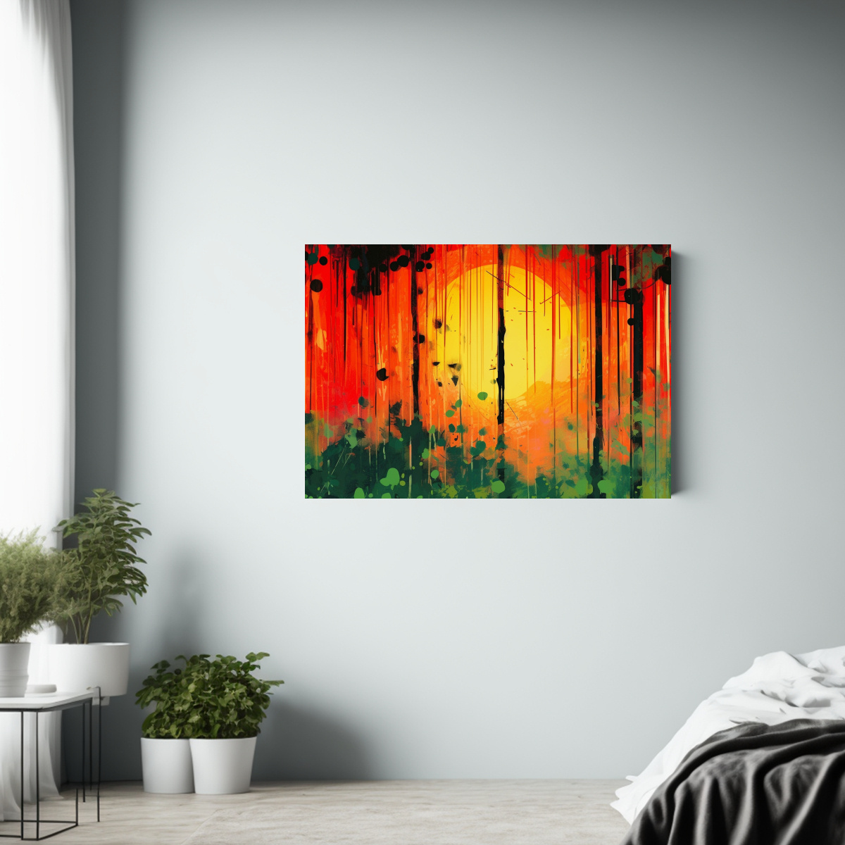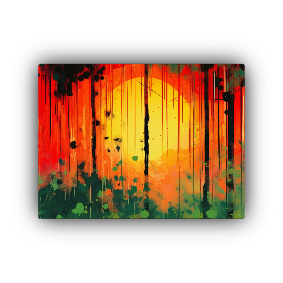 Cuadro Abstracto: Naranja Cielo Y Verde Follaje Rojo Serigrafía