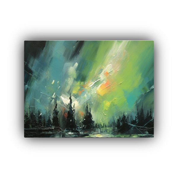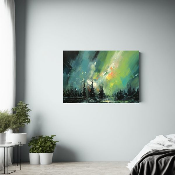 Cuadro Abstracto Nórdico En Alto Contraste Inspirado En Auroras Boreales