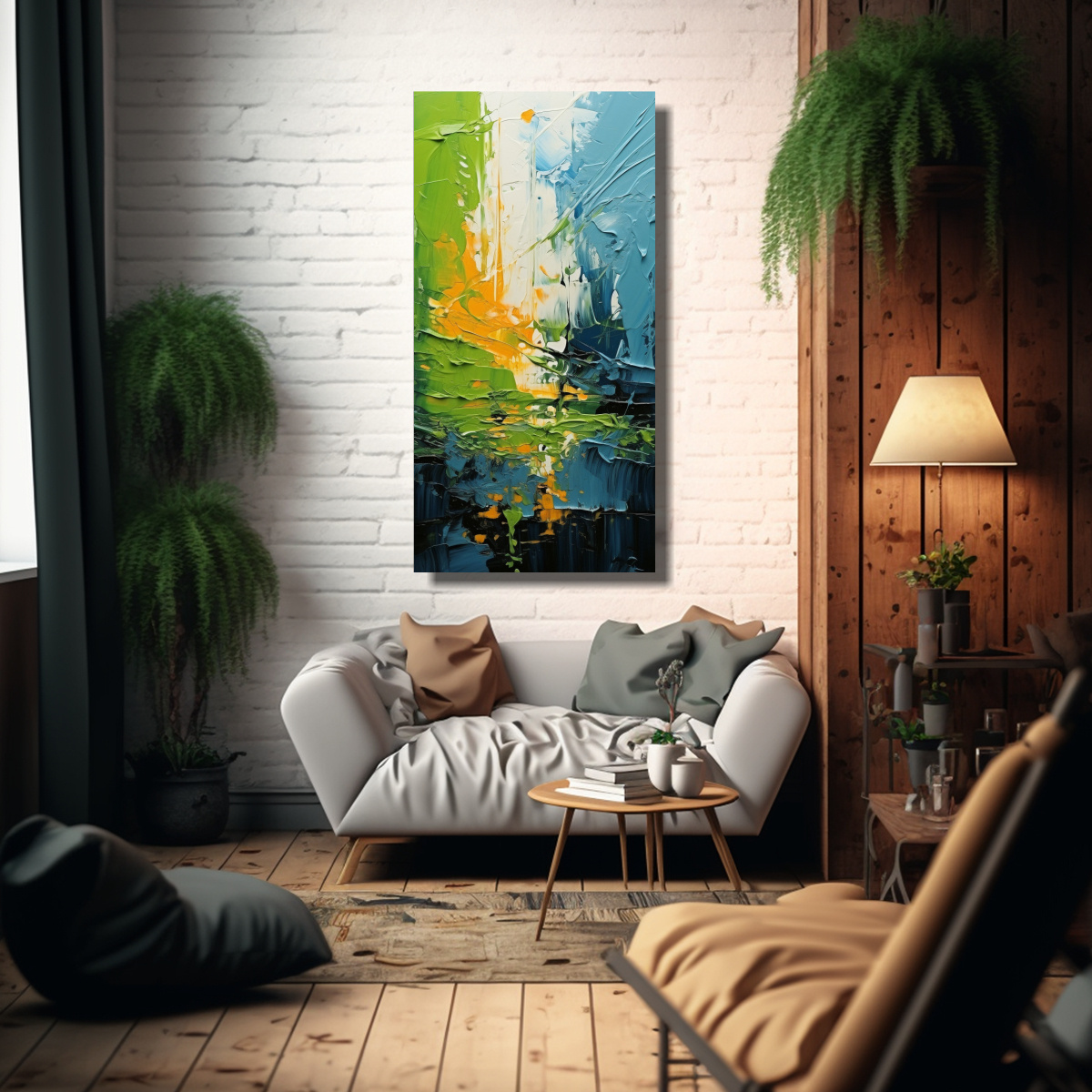 Este cuadro abstracto estilo Estilo óleo moderno es perfecto para decorar tu salón Puedes colocarlo sobre un sofá de color neutro para resaltar sus tonos vibrantes Además, puedes combinarlo con cojines en tonos dorados y plateados para crear una armonía en la decoración Sin duda, este cuadro será el centro de atención de tu sala de estar