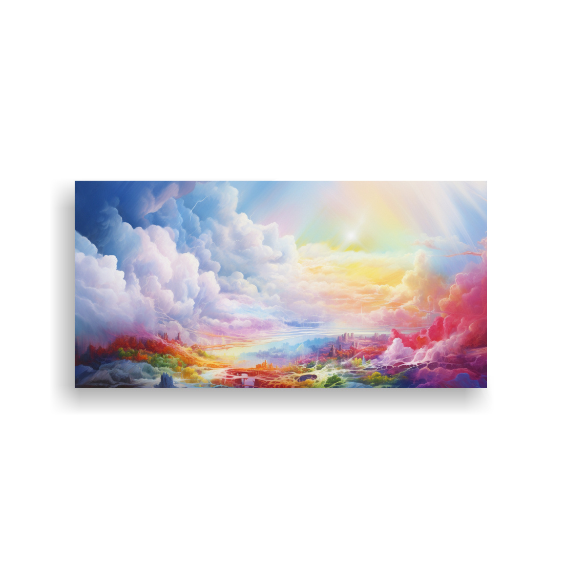 Agrega un toque de elegancia con este Cuadro abstracto paisaje con arcoíris y colores blancos Plateado, Azul Marino grisaceo, Gris, Turquesa, Carmesí, Lila, Violeta se combinan para crear una obra única y vibrante ¡No te lo pierdas!