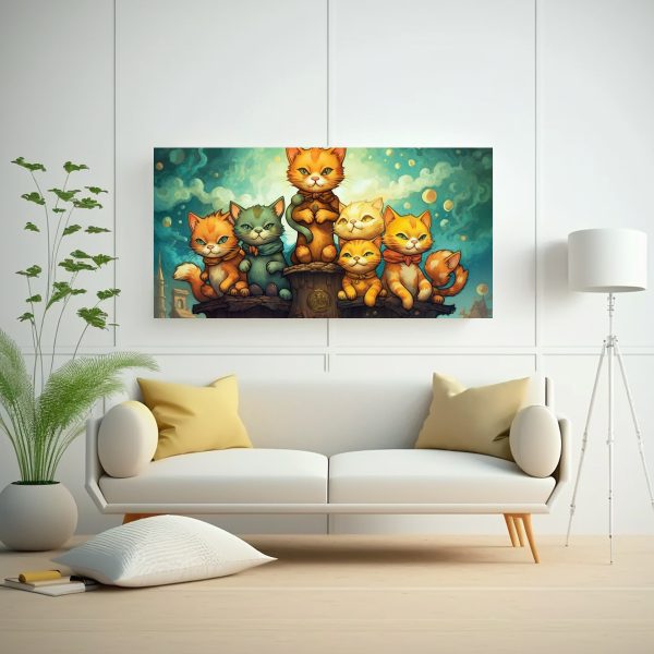 Cuadro Abstracto Para Decoración De Comedor Con Gatos En Colores