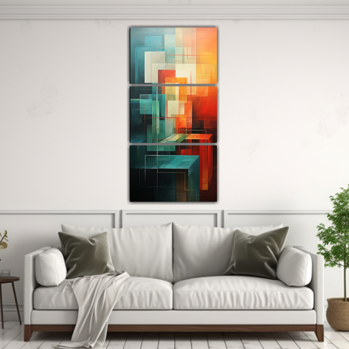Coloca este vibrante set de cuadros abstractos en lienzo sobre el sofá del comedor para lograr un impacto visual único Complementa con cojines en tonos similares para una decoración armoniosa y elegante
