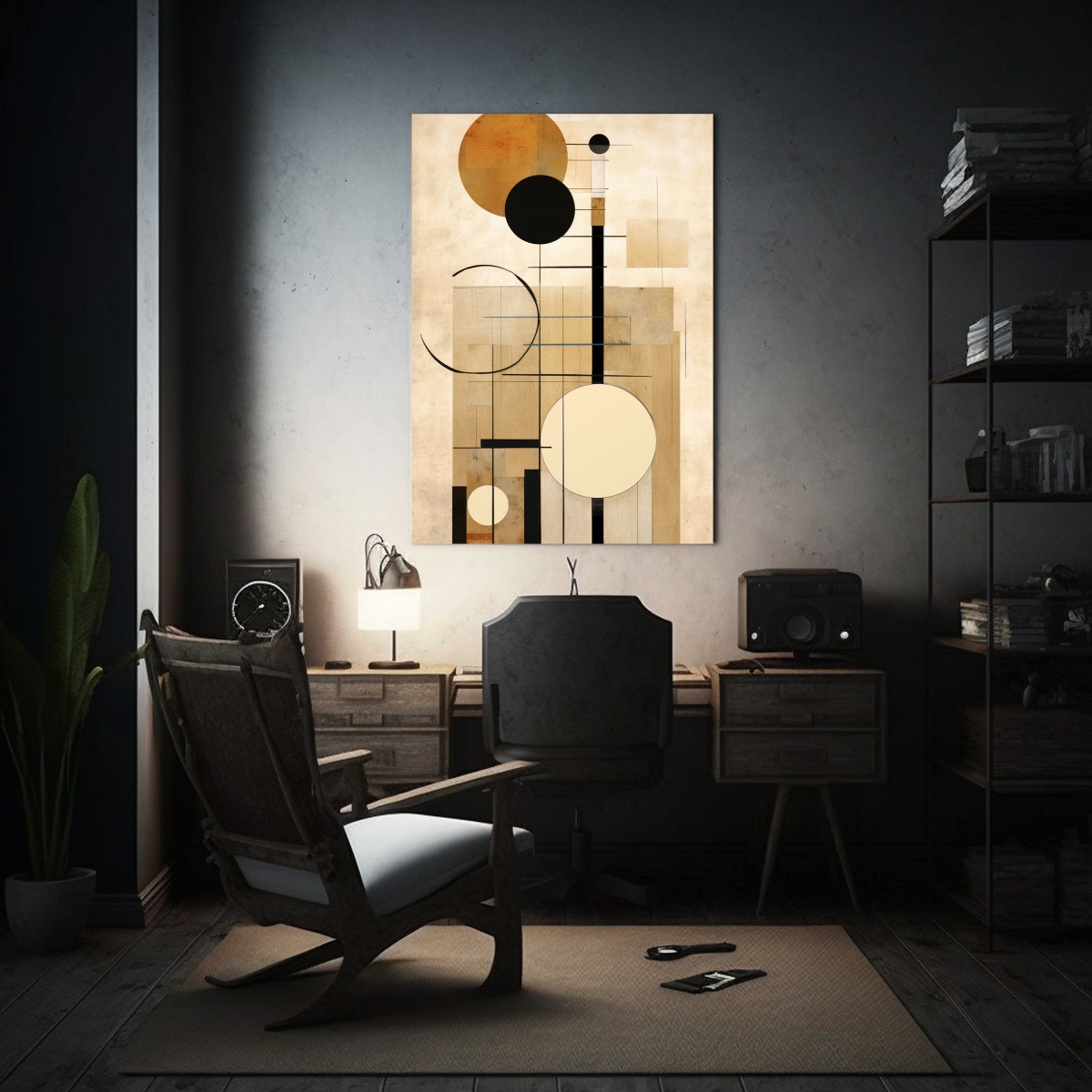 Cuadro Abstracto Para Dormitorio Con Círculos Y Formas Beige.