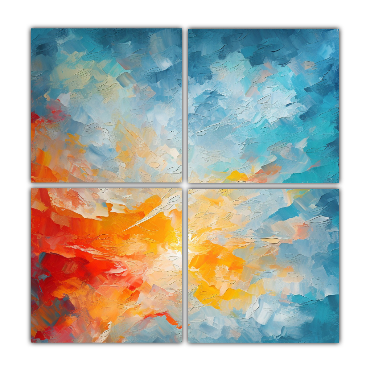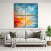 Cuadro Abstracto Para Sala En Tonos Azul Cielo Rojo Naranja Blanco Amarillo