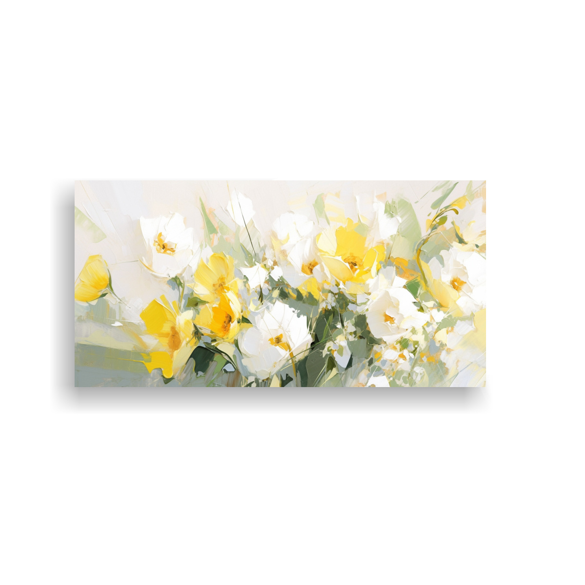 Cuadro Abstracto Para Sala: Flores Amarillas Y Blancas En Lienzo