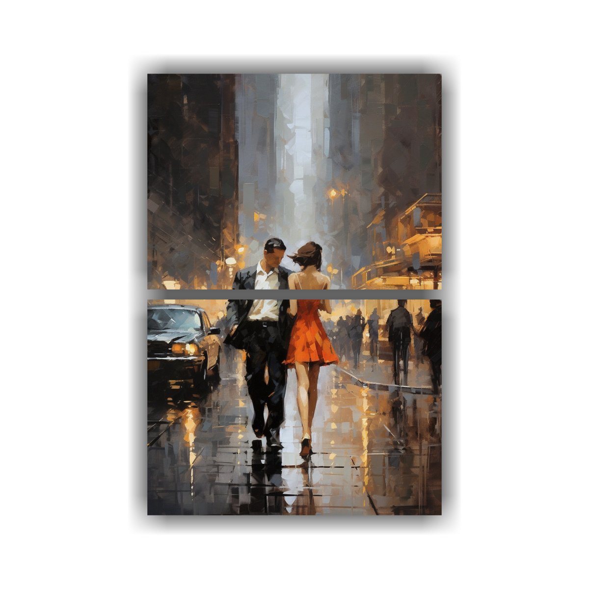 Un cuadro que captura a una pareja cautivadora en tonos Plateado, Azul Marino grisáceo, Gris, Negro y Carmesí Impreso en tela de alta calidad con bastidores de madera Los cuadros más baratos y de mejor calidad del mercado Envío gratis en Santiago y envío express a regiones
