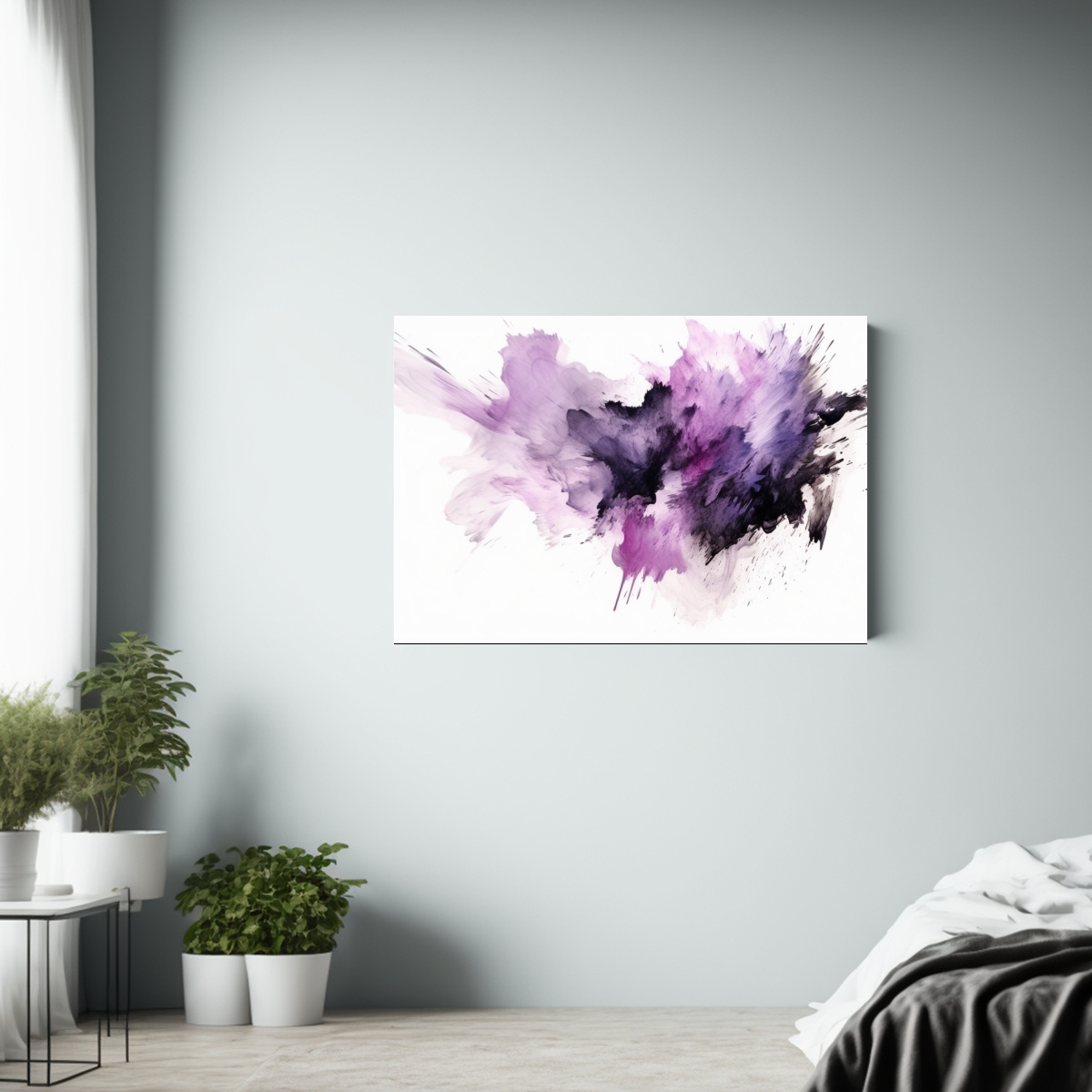 Renueva tu espacio con esta obra de arte moderna Las pinceladas negras y moradas sobre fondo blanco brindarán elegancia y sofisticación a tu ambiente Aprovecha la mejor calidad y variedad de diseños en nuestra tienda online