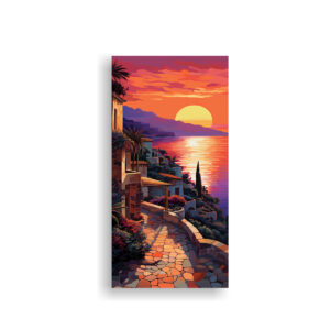 Este cuadro abstracto de playa tropical con temática cálida se vería espectacular en tu sala de estar Colócalo sobre un sofá de tonos neutros para resaltar los colores vibrantes de la obra También puedes complementarlo con cojines en tonos cálidos, como naranja o amarillo, y añadir plantas tropicales para crear un espacio acogedor y relajante ¡Deja que este cuadro transporte tu hogar a una playa paradisíaca!