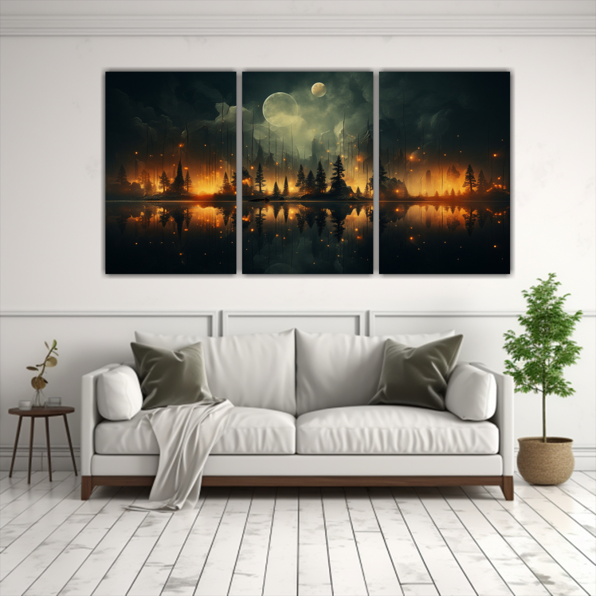 El cuadro abstracto Poderosos Bosques de Lienzo Tres encajará perfectamente en una sala de estar moderna Colócalo sobre un sofá de tonos neutros para resaltar su belleza y combínalo con cojines en tonos dorados y plateados para un efecto elegante ¡Crearás un espacio único y acogedor!