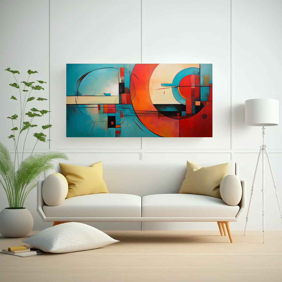 Coloca este cuadro en el centro de tu sala de estar para crear un punto focal impresionante Combínalo con cojines en tonos de coral, turquesa y plateado para lograr una decoración armoniosa y atractiva ¡Dale a tu hogar el toque de estilo que se merece con este cuadro abstracto de escenario!