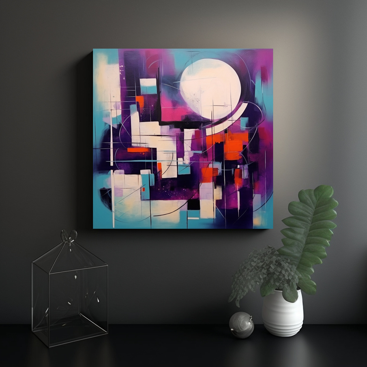 Coloca este cuadro abstracto púrpura con toque moderno en tu sala de estar para darle un toque de sofisticación Combínalo con cojines en tonos gris y turquesa para lograr un ambiente armonioso y elegante