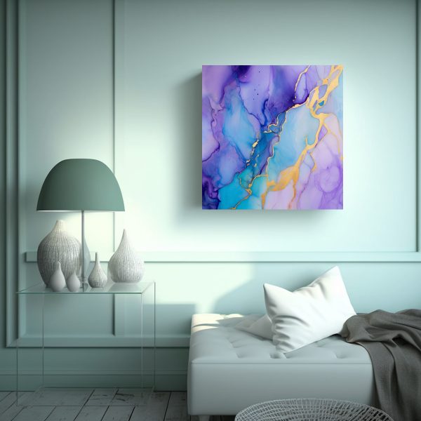Cuadro Abstracto Regalo En Estilo Dorado, Azul Y Morado