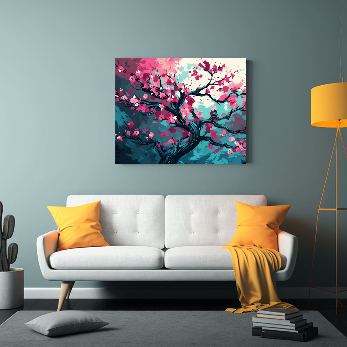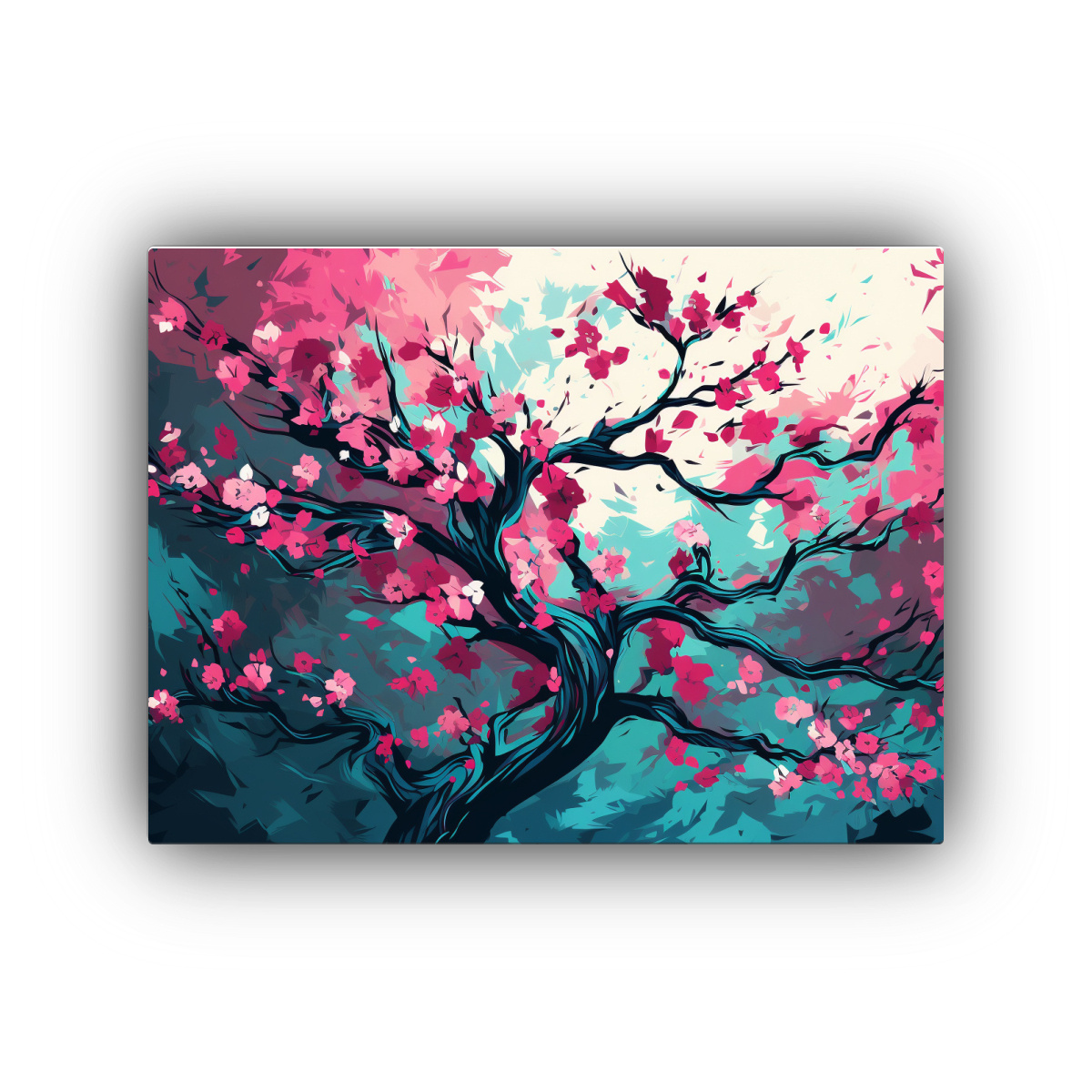 Este cuadro abstracto de un roble en turquesa y rosa es ideal para ser el punto focal en tu sala de estar, creando un ambiente neonoir moderno Combínalo con muebles en tonos neutros y accesorios en negro para resaltar su belleza y darle un toque sofisticado a tu espacio ¡Sorprende a tus invitados con esta pieza única!