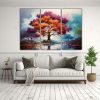 Cuadro Abstracto Simétrico En Bastidor Con Tres Telas Y árbol De Eucalipto.