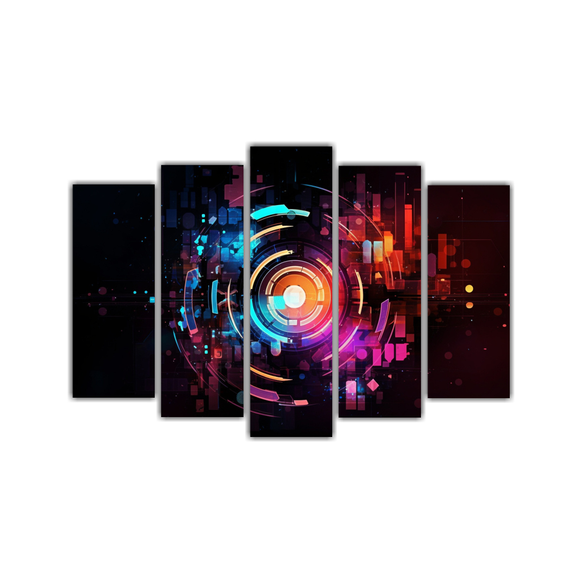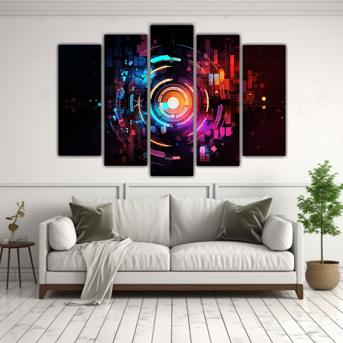 Cuadro Abstracto Tecnología Formación Sobre Cinco Telas En Bastidor