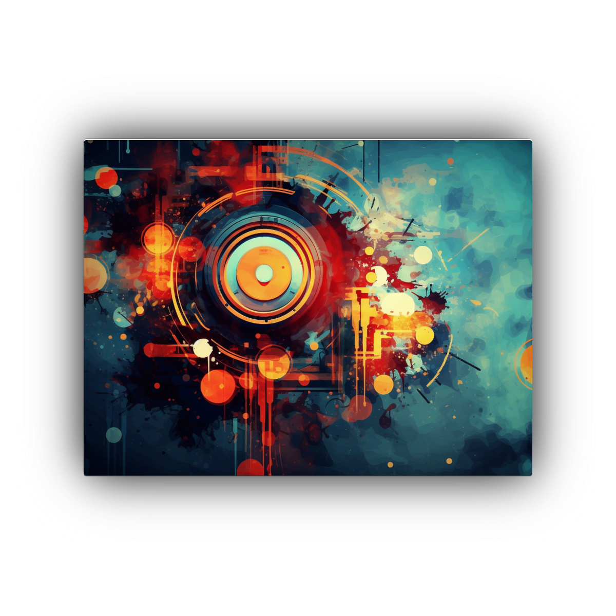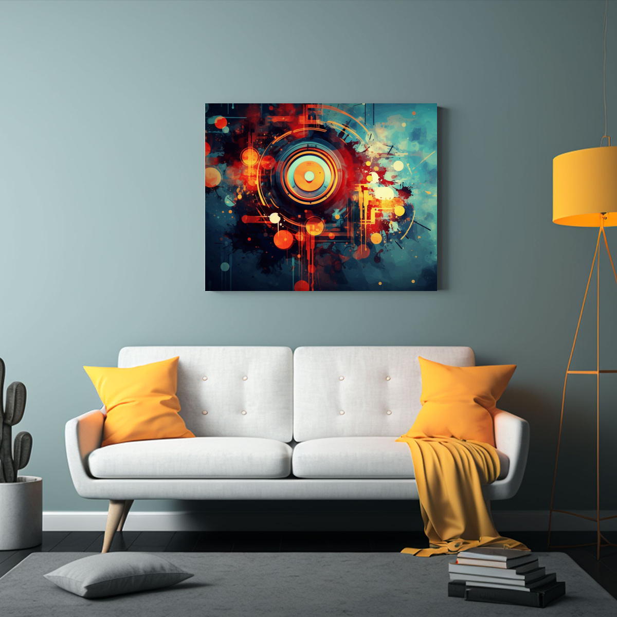Este cuadro abstracto tecnológico con toques naturales es ideal para decorar tu sala de estar o tu estudio, creando un ambiente moderno y vanguardista Colócalo en una pared blanca para que resalten sus colores vibrantes, o combínalo con muebles en tonos neutros para un contraste elegante y sofisticado